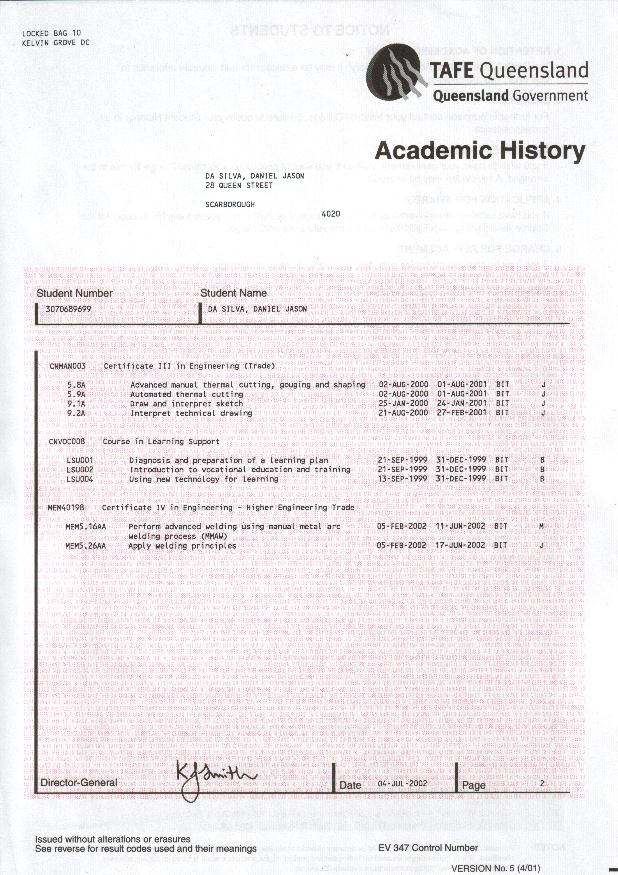 Academic Qualifications The following are the specific units which I have studied an successfully achieved accreditation towards.
